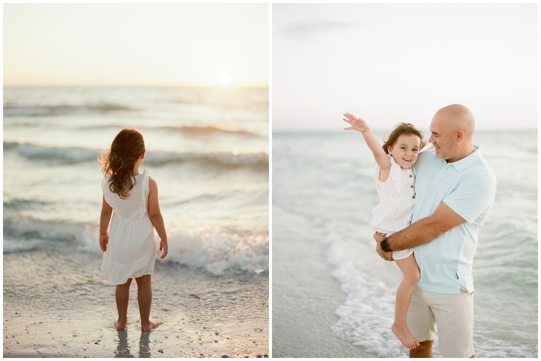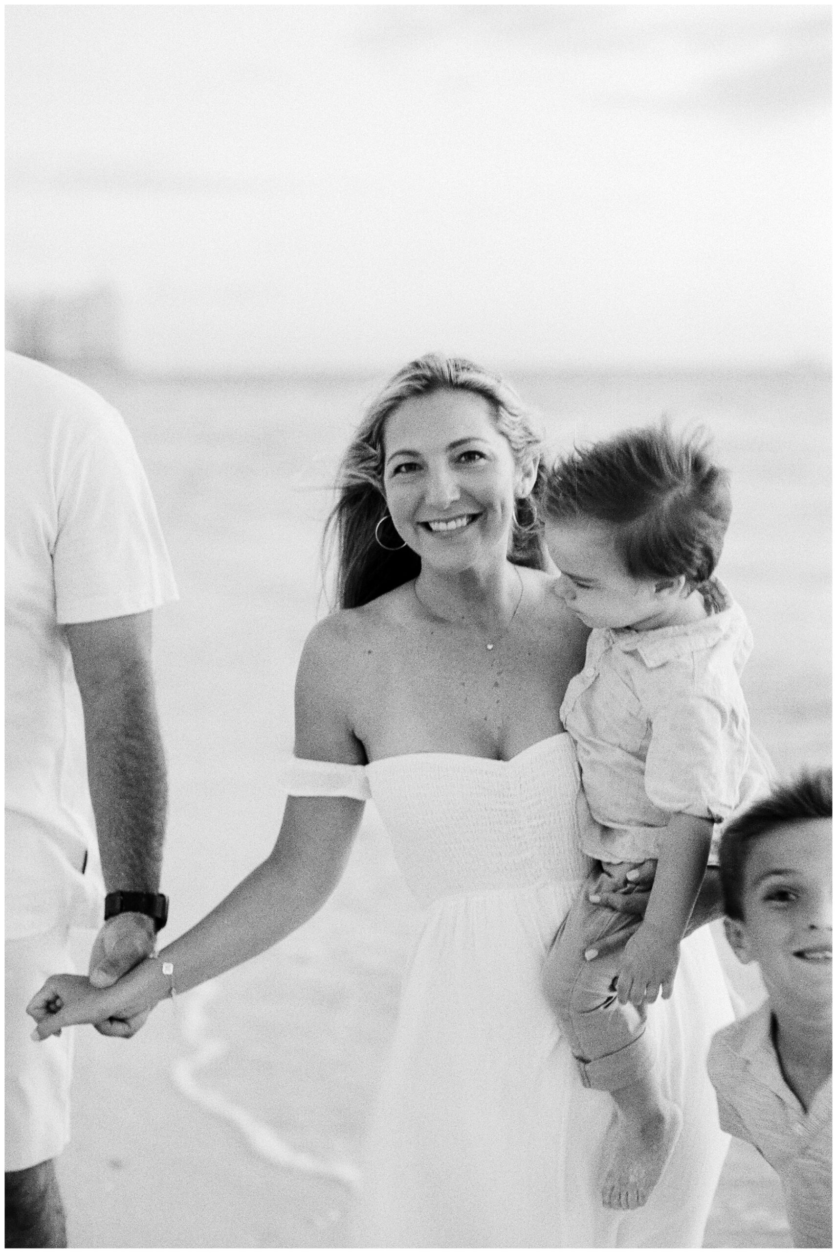I use movement-based prompts instead of stiff posing. Walking, twirling, playing in the sand, and interacting with mom and dad all create moments that feel genuine rather than staged. Because I’m not aiming for perfectly posed images, children tend to relax quickly and let their personalities shine.