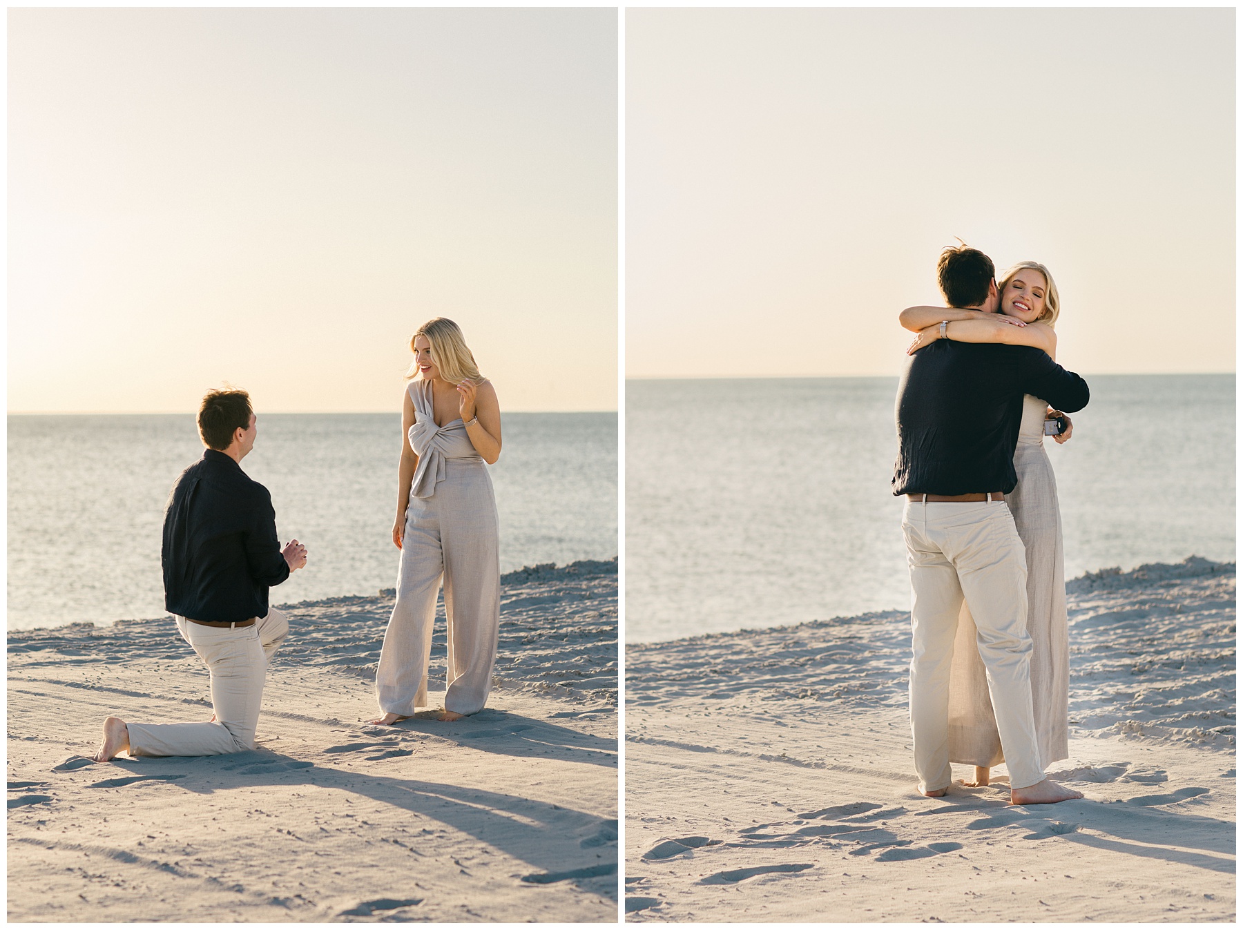 Sunset is the ideal time for a Port Royal engagement session. I typically recommend scheduling about 45 minutes before sunset. This allows time for a proposal if planned, followed by portraits during the final 20–30 minutes of golden light. That last stretch of sunset provides the warm, flattering glow that makes beach engagement images feel timeless.