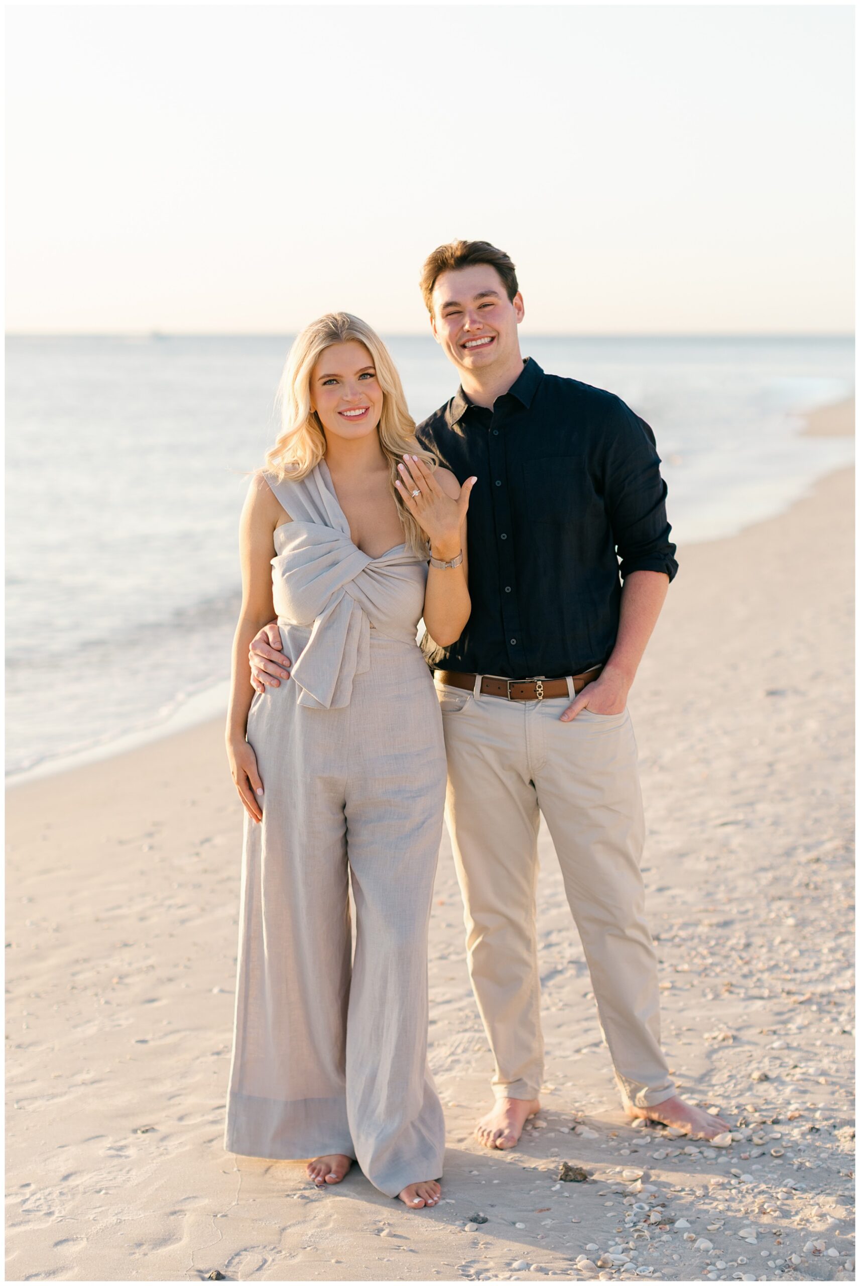 Because the beaches are primarily private, they tend to feel far less crowded than many public access points in Naples. That means more open shoreline, uninterrupted views, and space to move naturally during your session. The soft white sand and calm Gulf waters create a setting that feels both refined and effortless, exactly the balance many couples are looking for when planning their engagement photos.