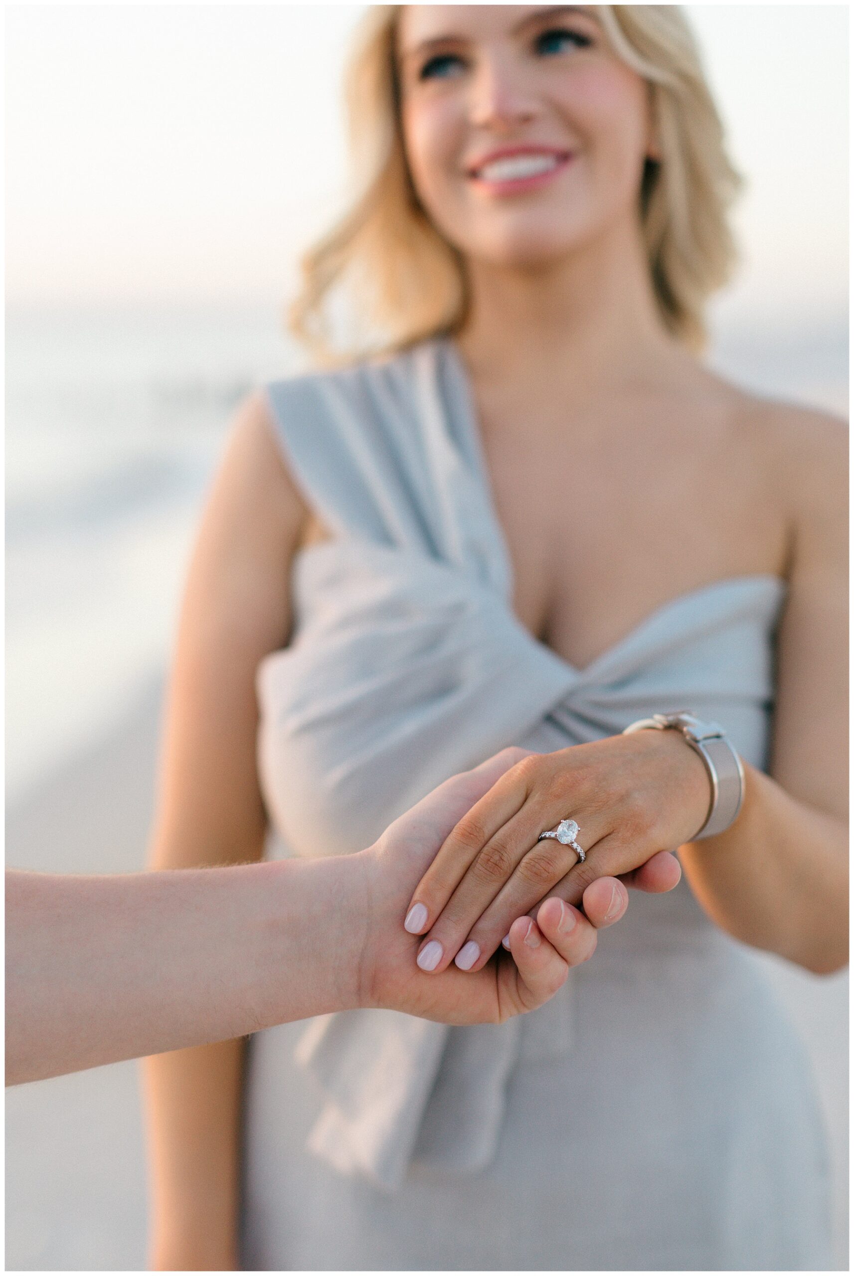 There’s something distinct about the atmosphere here. The quiet shoreline, the breeze off the Gulf, and the soft sand underfoot create a relaxed, intimate setting. Whether we’re walking along the water’s edge or capturing still, posed portraits, the environment naturally encourages authentic movement and connection.