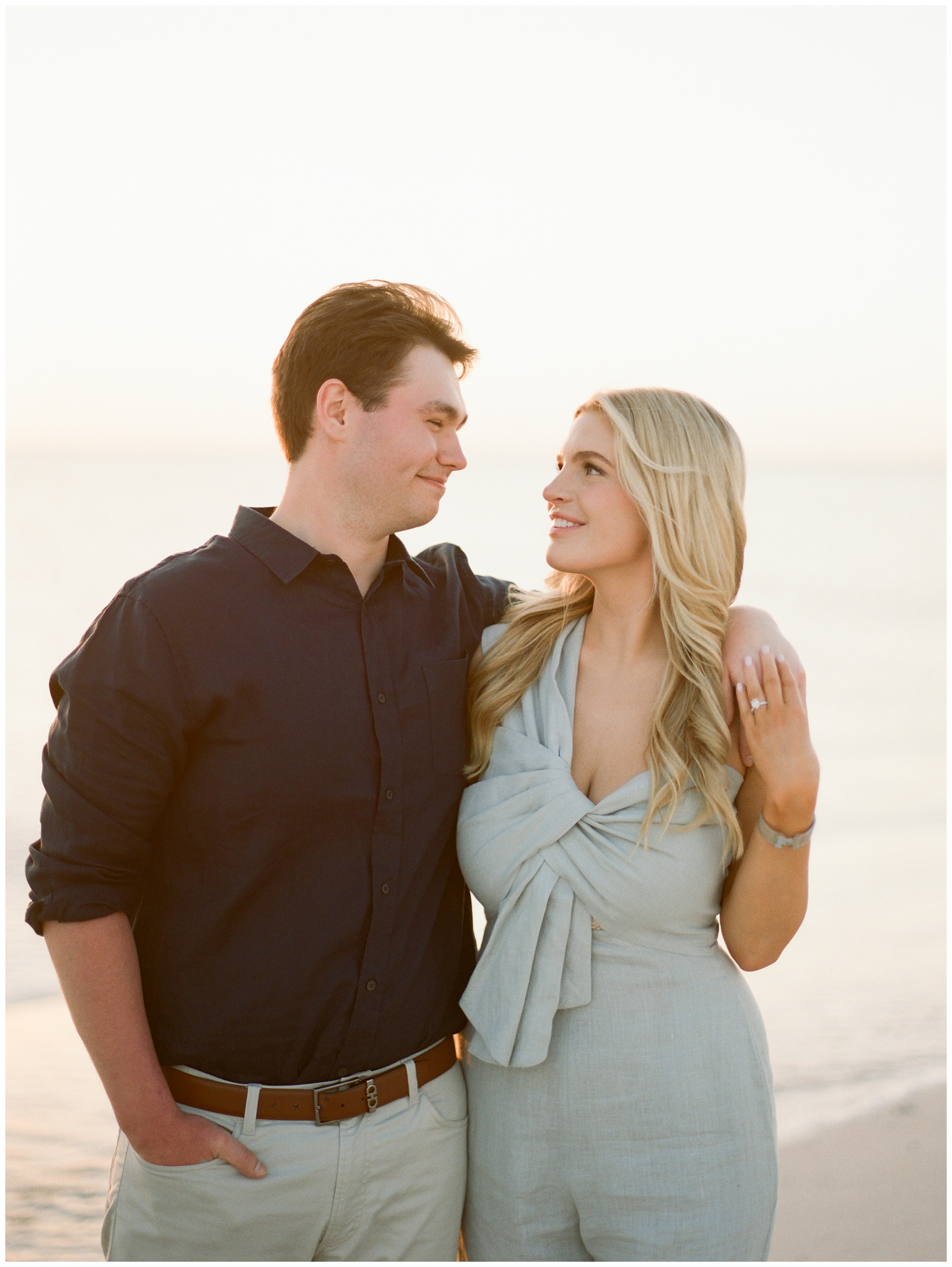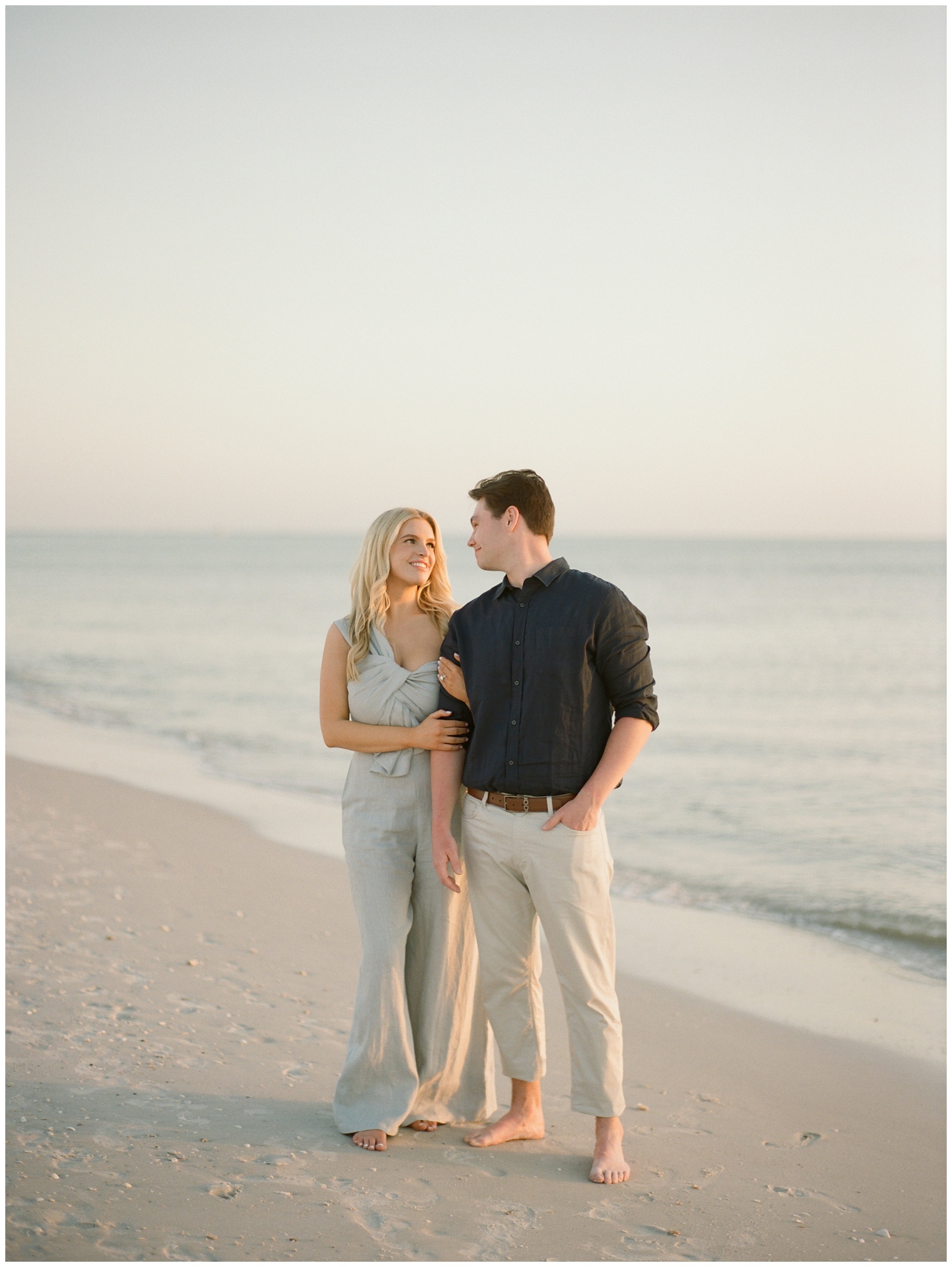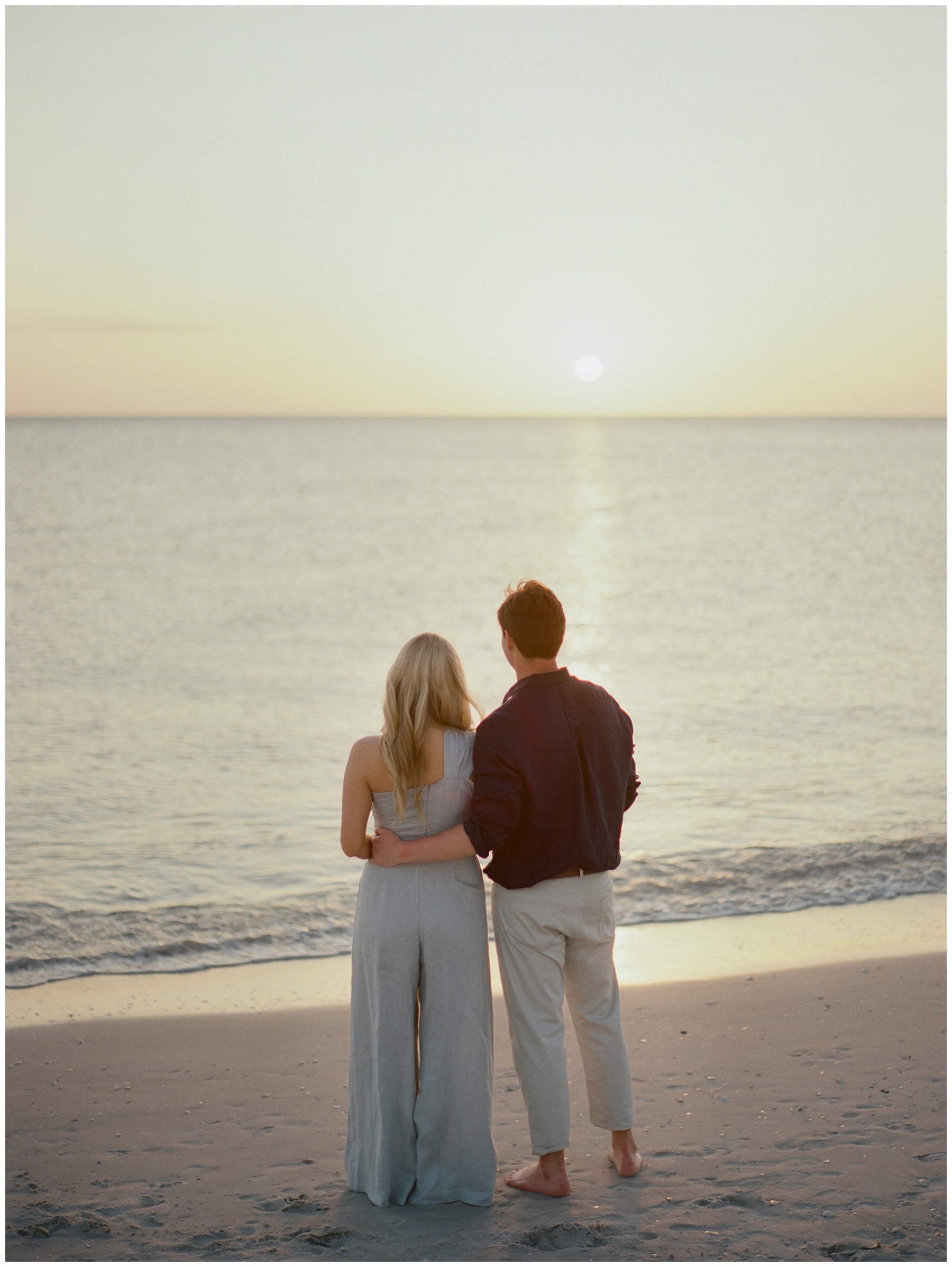 The soft tones and glowing Gulf light here pair beautifully with film photography. This session was photographed on film, my primary medium for documenting couples and families. If you’d like to learn more about why I choose to shoot film, you can read more here